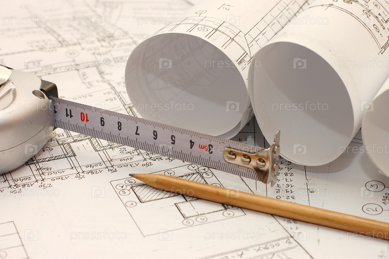 Инструменты для проектирования и чертежи здания
