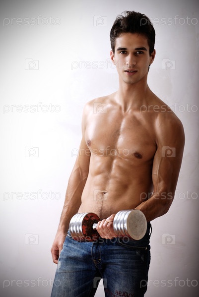 Парень с гантелью