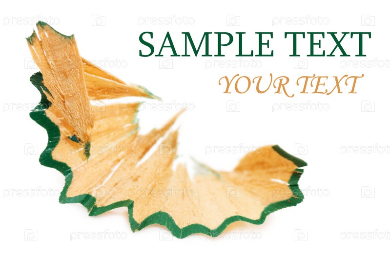 Стружка от зеленого карандаша на белом фоне