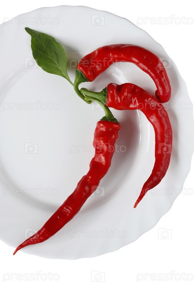 Три перца чили на тарелке