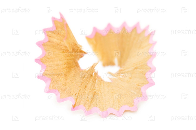 Стружка от розового карандаша на белом фоне