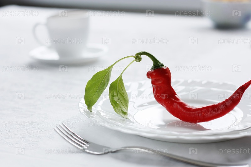 Перец чили на тарелке