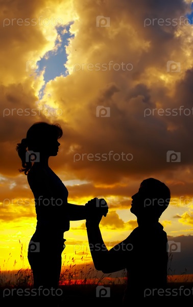 Силуэты мужчины и женщины на фоне заката