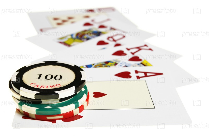 Карты и фишки на белом фоне