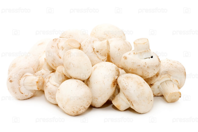 Шампиньоны на белом фоне крупным планом