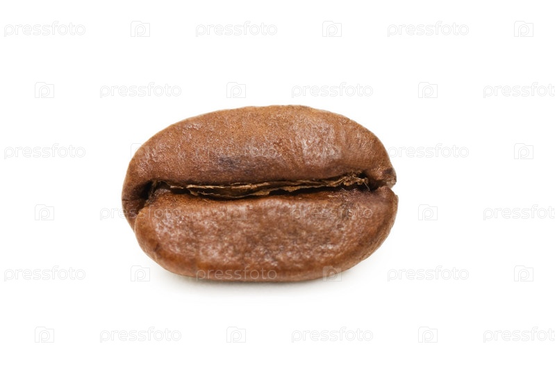 Кофейное зерно крупным планом на белом фоне