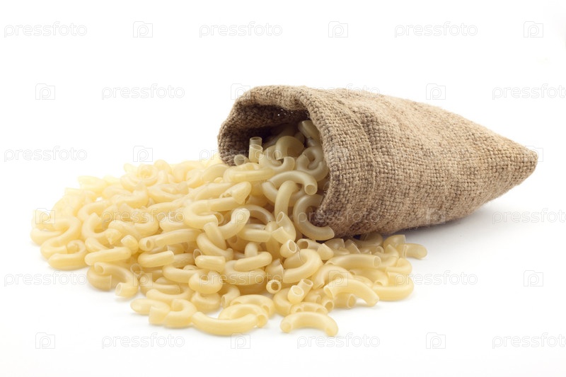 Мешок макарон на белом фоне