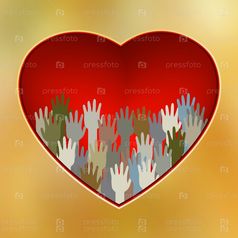 Красное сердце с руками на ярком фоне
