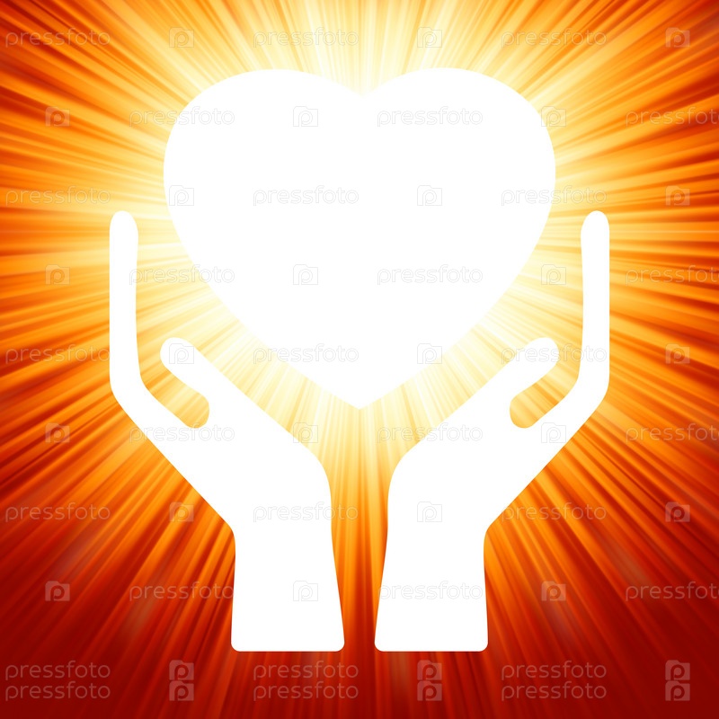 Сияющее сердце в руках на ярком фоне