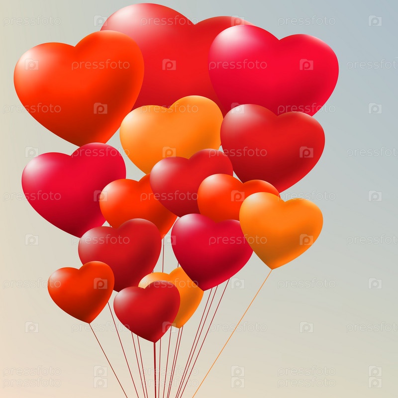 Связка шаров в форме сердца крупным планом