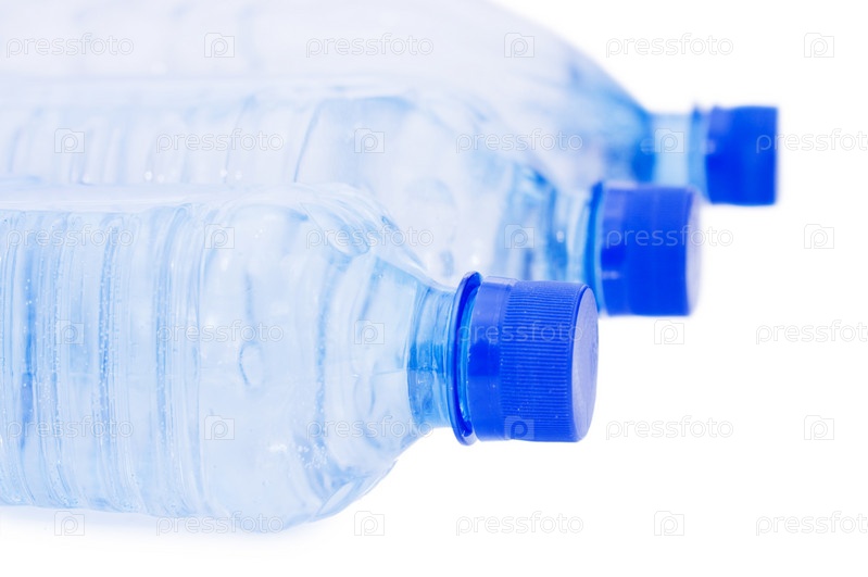 Бутылки воды на белом фоне