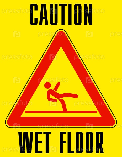Знак "Осторожно, мокрые полы" на желтом фоне