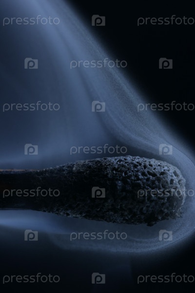Сгоревшая спичка крупным планом на черном фоне