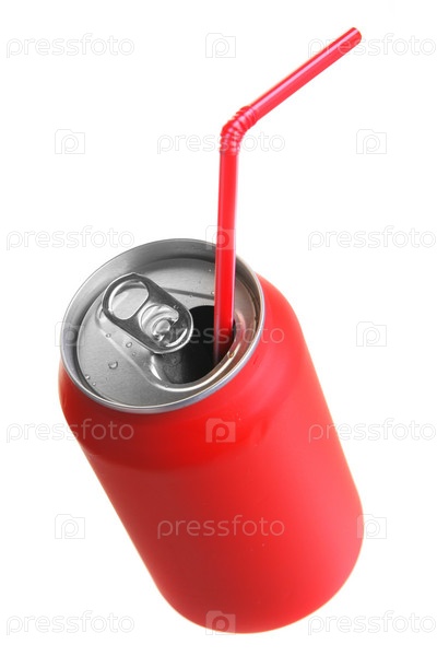 Красная жестяная банка на белом фоне