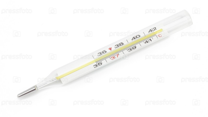 Ртутный термометр на белом фоне