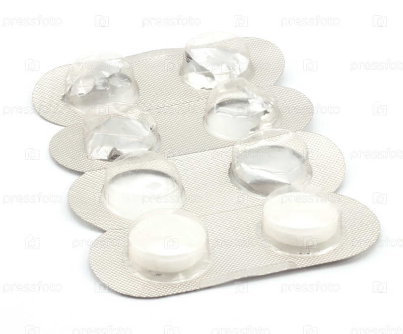 Полупустая упаковка таблеток на белом фоне