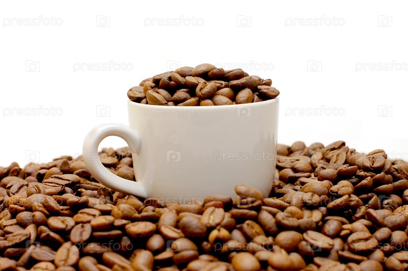 Белая чашка с кофейными зернами