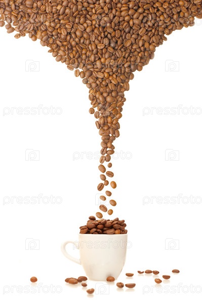 Кофе в зернах сыплется в чашку
