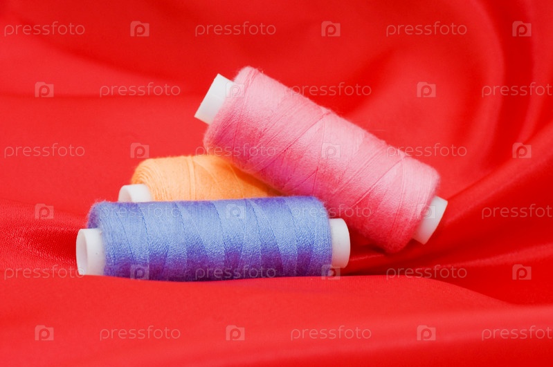 Цветные нитки на красном фоне