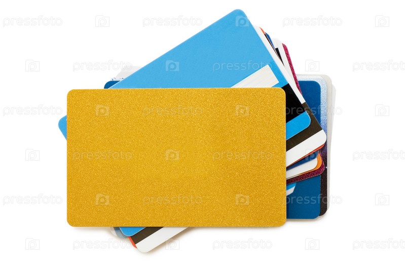Стопка кредитных карт на белом фоне