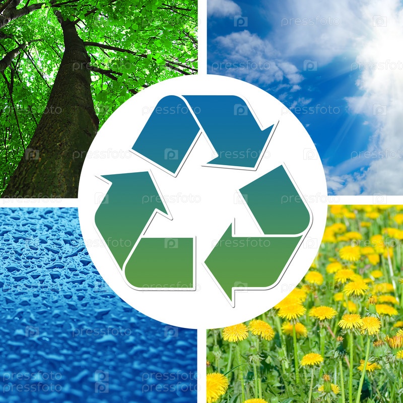 Знак вторичной переработки на фоне природы