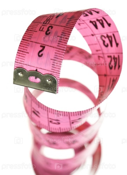 Розовая сантиметровая лента, изолированная на белом фоне