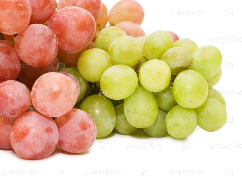 Красные и зеленые ягоды свежего винограда на белом фоне