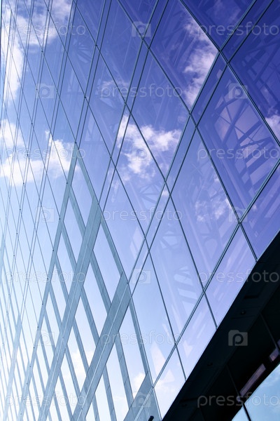 Прозрачная стеклянная стена небоскреба