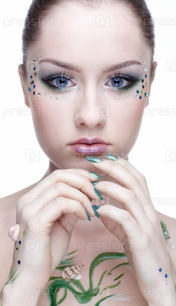 Молодая девушка с фантазийным макияжем. Боди-арт "Русалка"