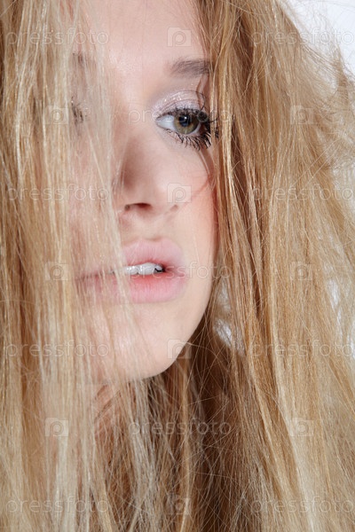 Портрет длинноволосой блондинки крупным планом