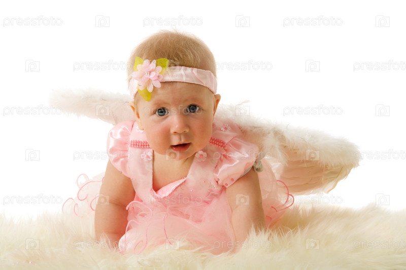 Очаровательная девочка с крыльями ангела на белом фоне