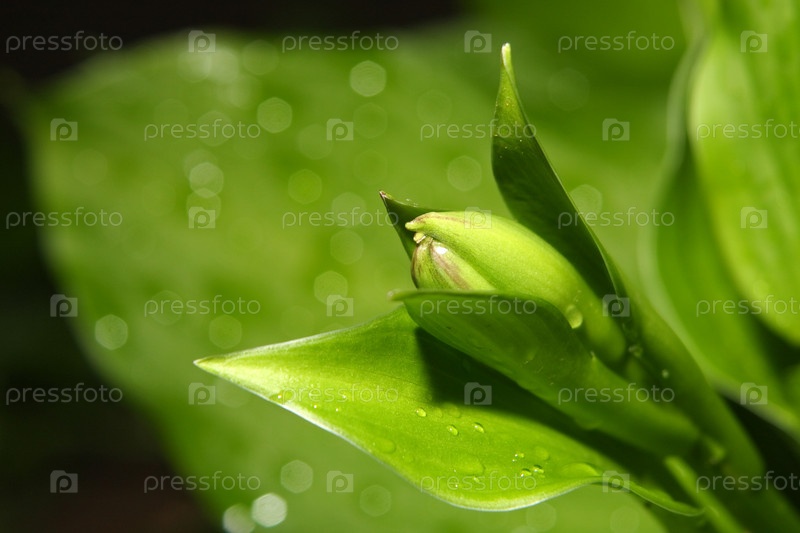 Роса капли на зеленые листья