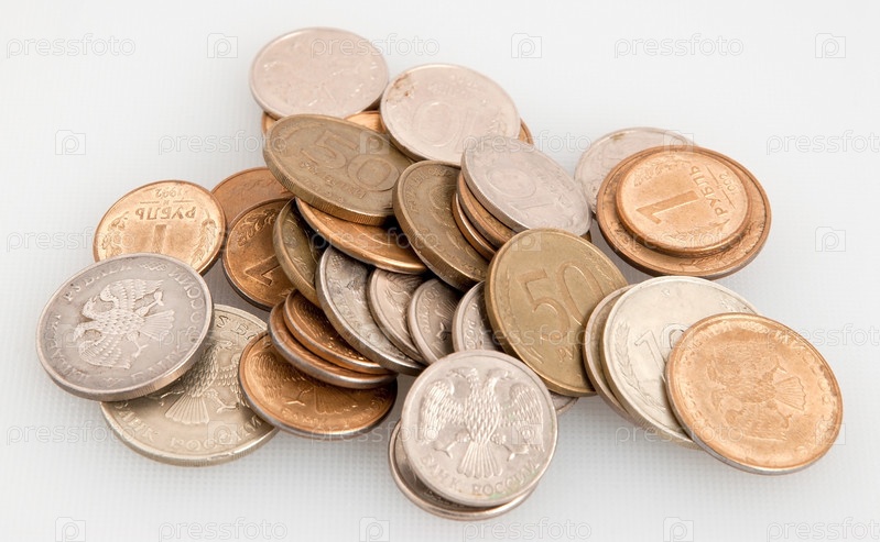 Много монет на белом фоне