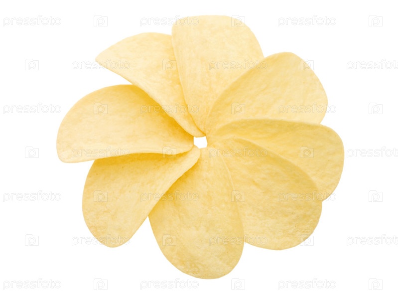 Картофельные чипсы на белом фоне