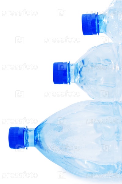 Бутылки для воды на белом фоне