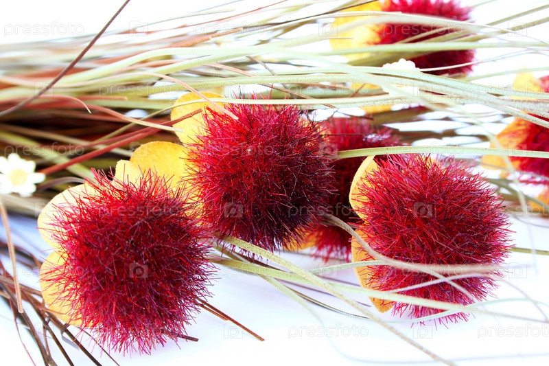 Декоративные пушистые цветы на белом фоне