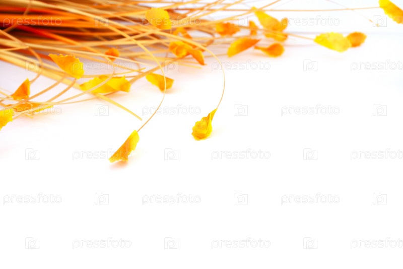 Желтые листья сухоцвета на белом фоне