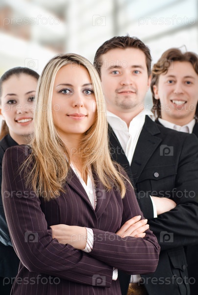 Команда успешных улыбающихся молодых бизнесменов