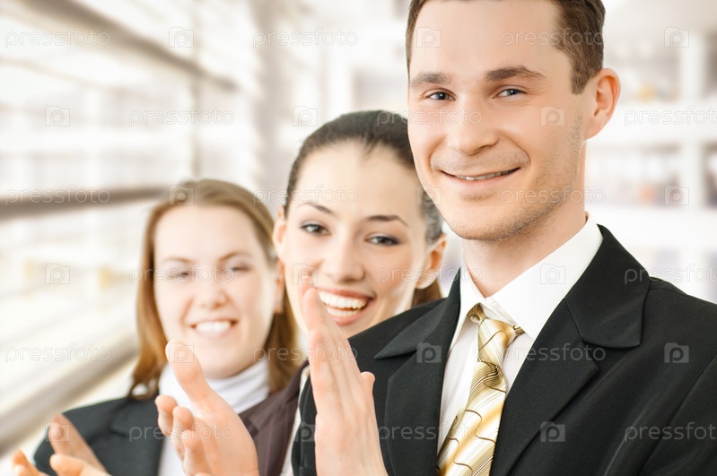 Команда успешных улыбающихся молодых бизнесменов