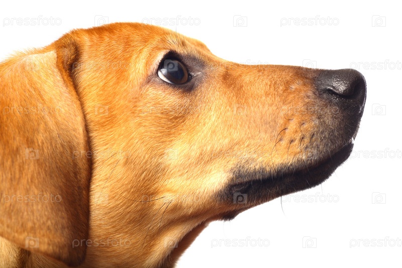 Милый щенок таксы крупным планом изолирован на белом фоне
