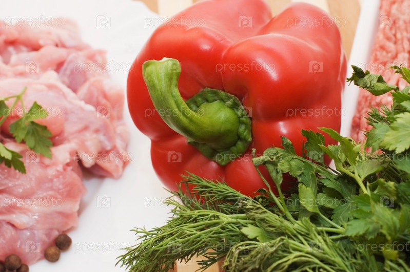 Свежее мясо, перец и зелень