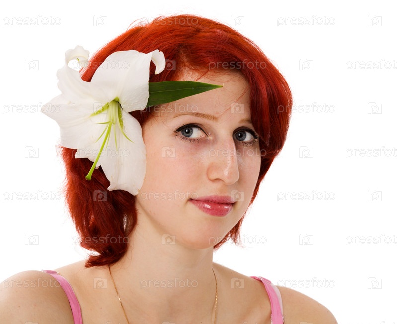 Портрет рыжеволосой женщины на белом фоне