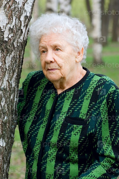 Портрет пожилой женщины возле дерева