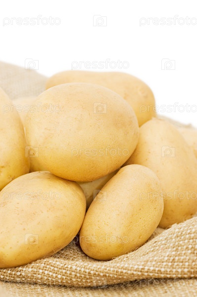 Свежий картофель на мешковине