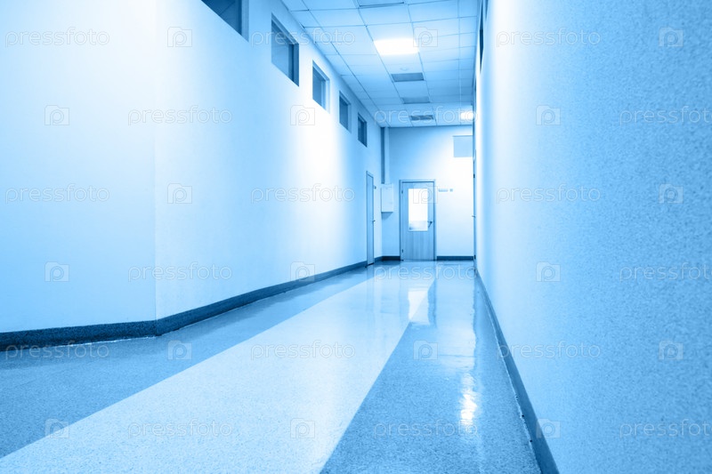 Перспектива коридора в современном офисе. Синий оттенок