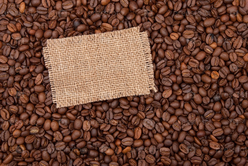 Кусочек льняной ткани на рассыпанных кофейных зернах