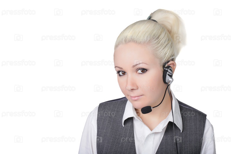 Девушка - оператор на белом фоне