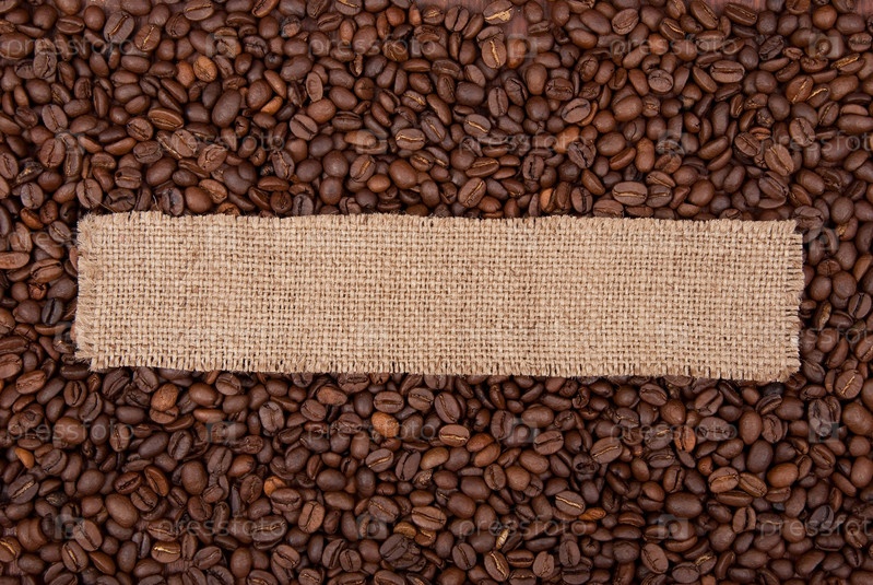 Кусочек льняной ткани на рассыпанных кофейных зернах