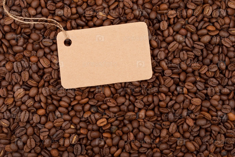 Пустая карточка на рассыпанных кофейных зернах