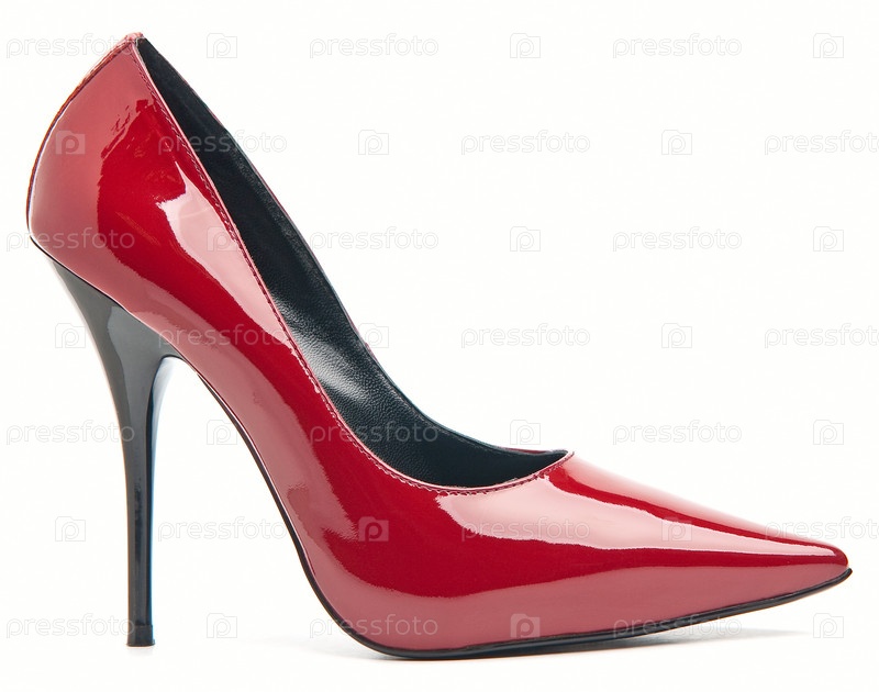Красная женская туфелька на белом фоне
